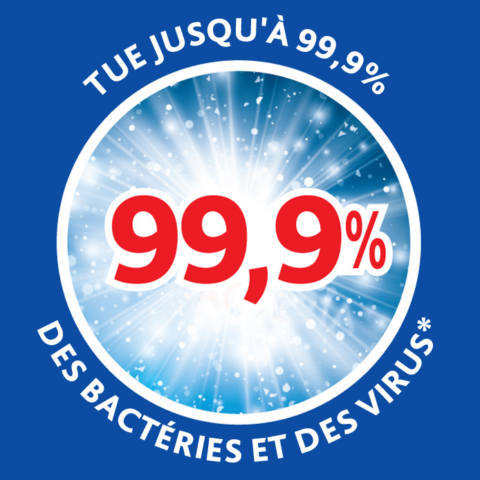 - Tue jusqu'à 99,9 % des bactéries et des virus*.